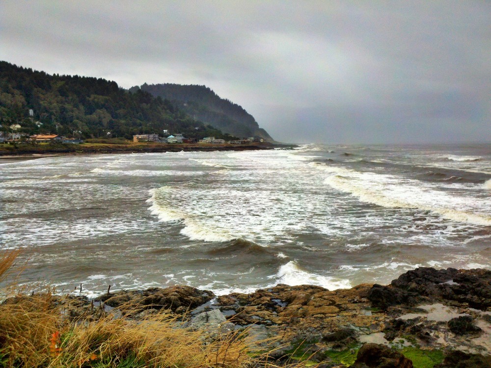Rolled into Yachats and enjoyed a Thai Coconut Escape at the Green Salmon Cafe, a great chai like drink to warm up on what looked might be a dreary day. And as I started to head out, the drizzle began. Time to test the rain gear!