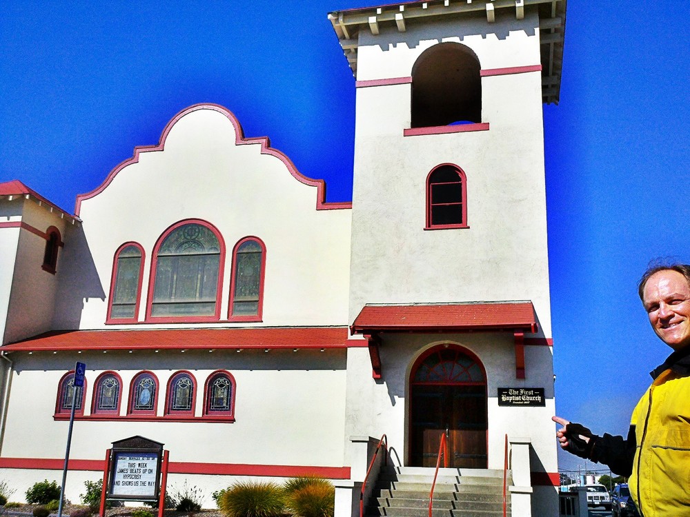 Noodling in the town of my birth, Fort Bragg. I visited all the same spots as last year – Mendocino Cookie Company, my dad’s old church, the Skunk Train, Noyo Bay – as well as a new spot – North Coast Brewing. Got their taster tray, 12 samples, but left it half way through, needing still to ride 20 miles. Besides, all their ales seemed flat and tasteless. Spoiled by our own Block 15, best beer on the West Coast!