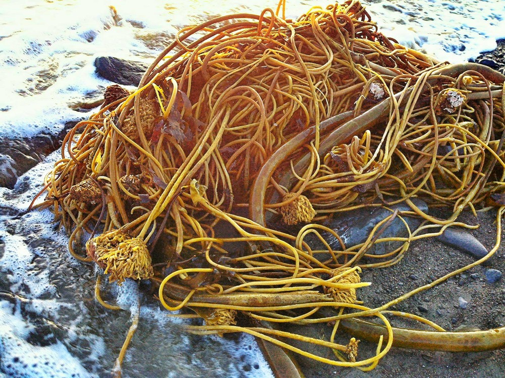 A heron swoops over the waves and lands on a raft of kelp. Bobbing up and down with the surf, the heron hunts for fish I cannot see. Poise and balance despite its gangly legs and craning neck.