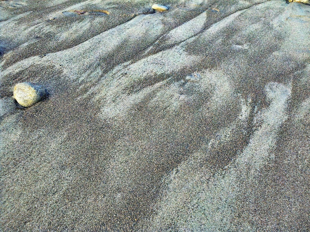The black sand beach is sharp against our feet. Young sand, rough edges, not the pearly smooth white stuff we usually have in Oregon.