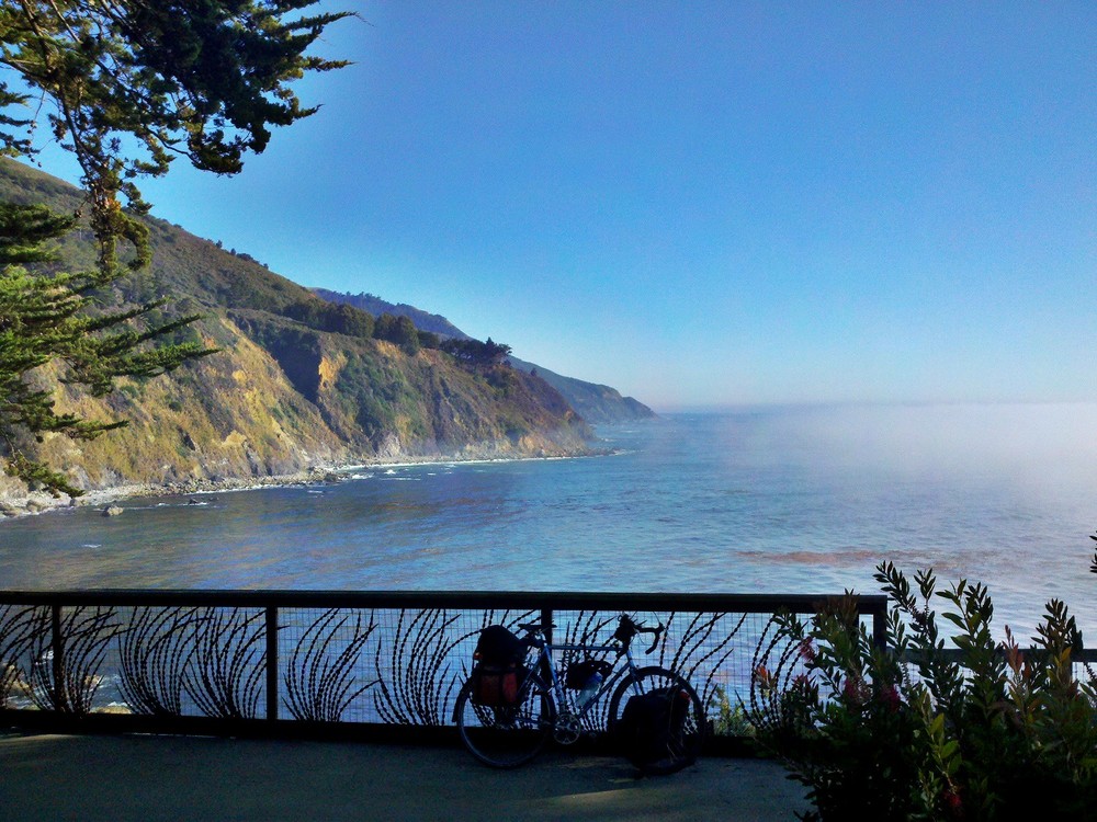 Made it! Just over 900 miles, arrived at Esalen early enough to enjoy a long soak ‘n sun session. The ride over the first hill at Big Sur Station was long, but the climb wasn’t tiring. I knew the destination was close, just 15 miles, wanting to see as much of this coast as possible.