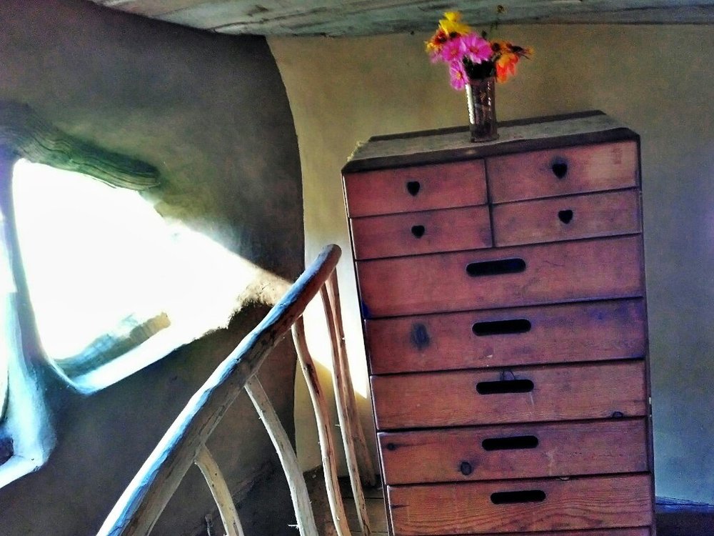 I wake refreshed, somewhat pensive. Now to go meet the folks here at Cob Cottage, the village of mud. I’ve known Ianto and Linda Evans for over 12 years, since they first visited our land to plan the workshop that would lead to the construction of the kiva and eventually the restaurant.