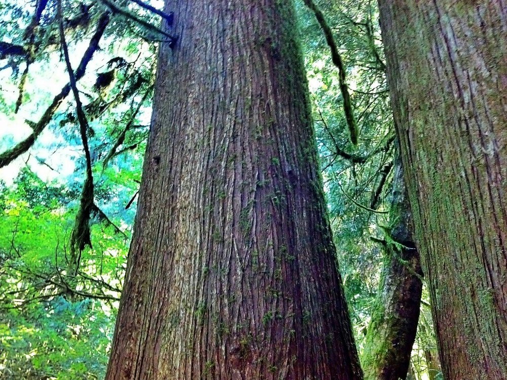 Linda takes me on a walk high up the ridge to the waterfall. I haven’t walked this trail before, and am stunned at the scope of the property, nearly 500 acres bought by Chip to save it from logging. A wooden pipe extends from a 100 year old dam, the original water source for Coquille.