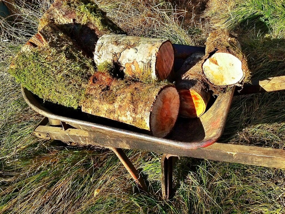 Walking down the hill, I wonder how I can pay for the hospitality, then I see Sarah wheeling firewood that Ianto has cut. I grab a wheel barrow and start what will be 10 loads, wheeled down 1/4 mile of steep incline. Hard on the legs and arms, but I welcome the workout. Bringing the barrow back up is also a challenge. Harder than most of the cycling!