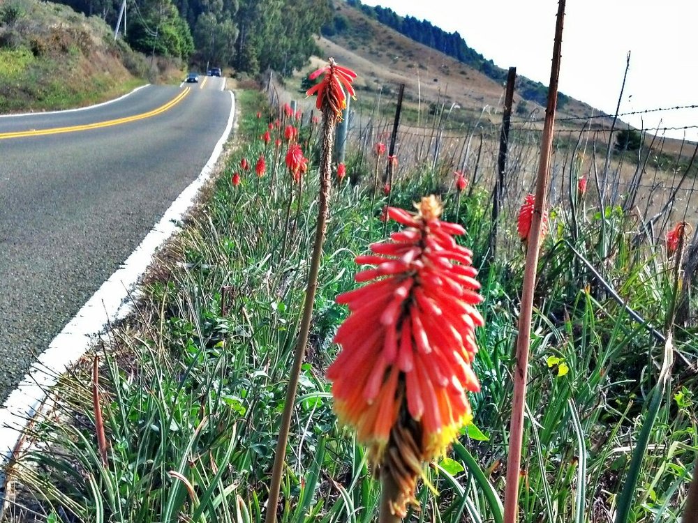 I arise to a misty morning. Night rain upon the tent fly. Muesli for breakfast, espresso at the Peg House across 101 from the campground. Then off, rolling a mile down to Leggett, where I pick up Highway 1.