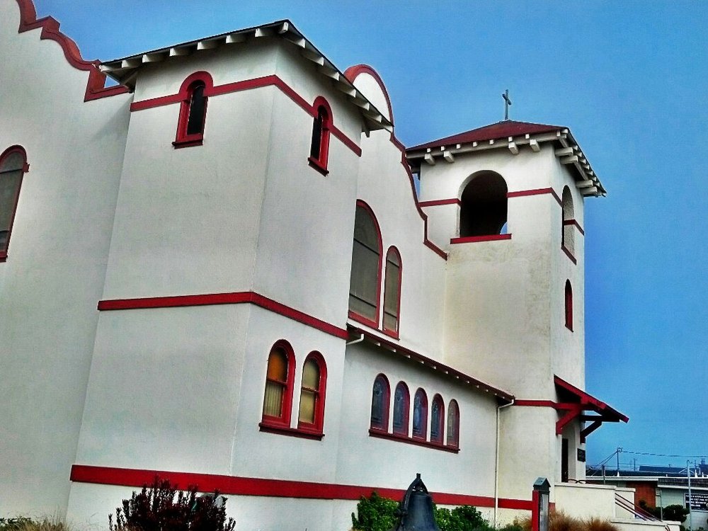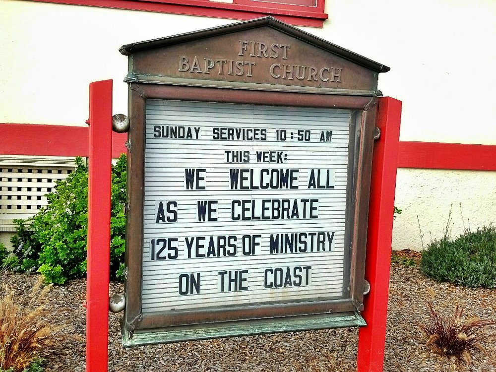 I enter Fort Bragg and hear a shrill whistle. I am just in time to see the steam engine Skunk Train setting out on its scenic tour into the redwoods. I roll up the the Baptist Church, and enter to meet the current pastor and a small gathering at the open house. The main event will be tomorrow’s service, where I will read a letter from my father.