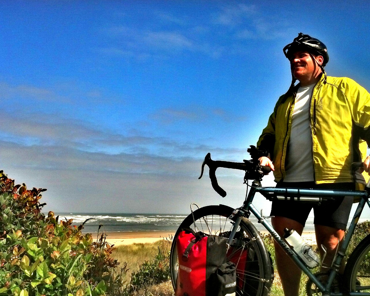 I turn onto 101, north, into a steady headwind. I’ve only 3 miles to go reach Waldport, where I’ll catch the road inland. I put my head down, and pedal into the wind. I remember riding north on the Cabrillo Highway in 2013, how I spent a whole day battling winds to ride from Santa Cruz back north to San Francisco. I think of the cyclists I’ve passed heading north, many who are grimacing, riding the whole coast upwind. Many, but not all. Steven, my German friend, he wouldn’t grimace. Every day is a celebration for him. I wonder where he is now, somewhere heading east, into Nevada likely, on his way to Chicago.